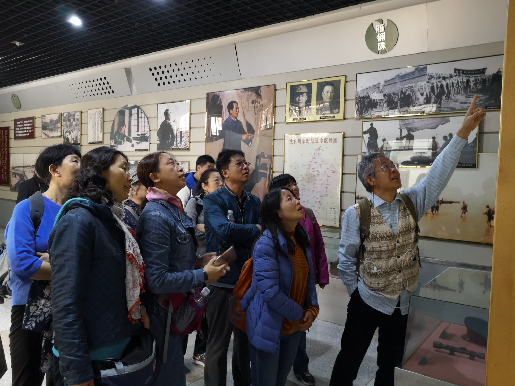 雁翎队是活跃在白洋淀中的水上游击队,在抗日战争时期为抗击日寇、保家卫国做出了不可磨灭的贡献。纪念馆中保存了大量雁翎队在抗战时期参与保家卫国的珍贵历史图片及实物,真实记录了雁翎队打击日寇、铲除汉奸,与侵略者进行殊死搏斗的场面。社员们认真仔细地观看着纪念馆的宣传照片、文字,边看边小声交谈着,想想过去,看看今天,从受帝国主义凌辱的日子到中国人民当家作主,从“新三年旧三年,缝缝补补又三年”到如今物质生活的极大丰富,尤其是改革开放的四十年使我们国家从贫穷走向富裕,从落后走向先进。社员们抚今追昔,无不赞叹中国共产党的伟大,“不忘初心,牢记使命”是共产党人的信条,也是与之荣辱与共的九三人的信条!
