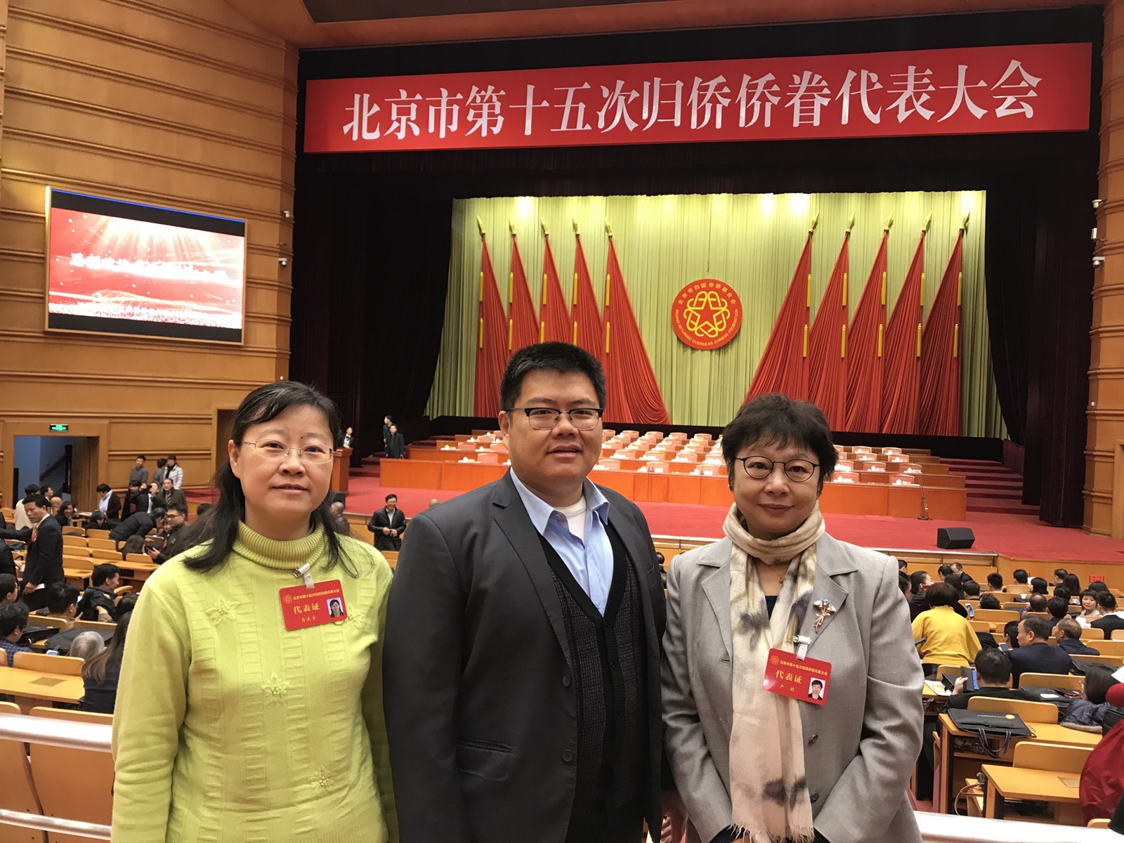 2019年11月26日上午,北京市第十五次归侨侨眷代表大会在北京会议中心开幕。中共中央政治局委员、北京市委书记蔡奇,中国侨联党组书记、主席万立骏,北京市委副书记、市长陈吉宁,北京市政协主席吉林,北京市委常委、秘书长崔述强,北京市委常委、统战部长齐静等领导出席开幕式。我校侨联主席卢颖、副主席肖连宇作为大会代表出席了会议,学校党委统战部常务副部长张小勇列席会议。