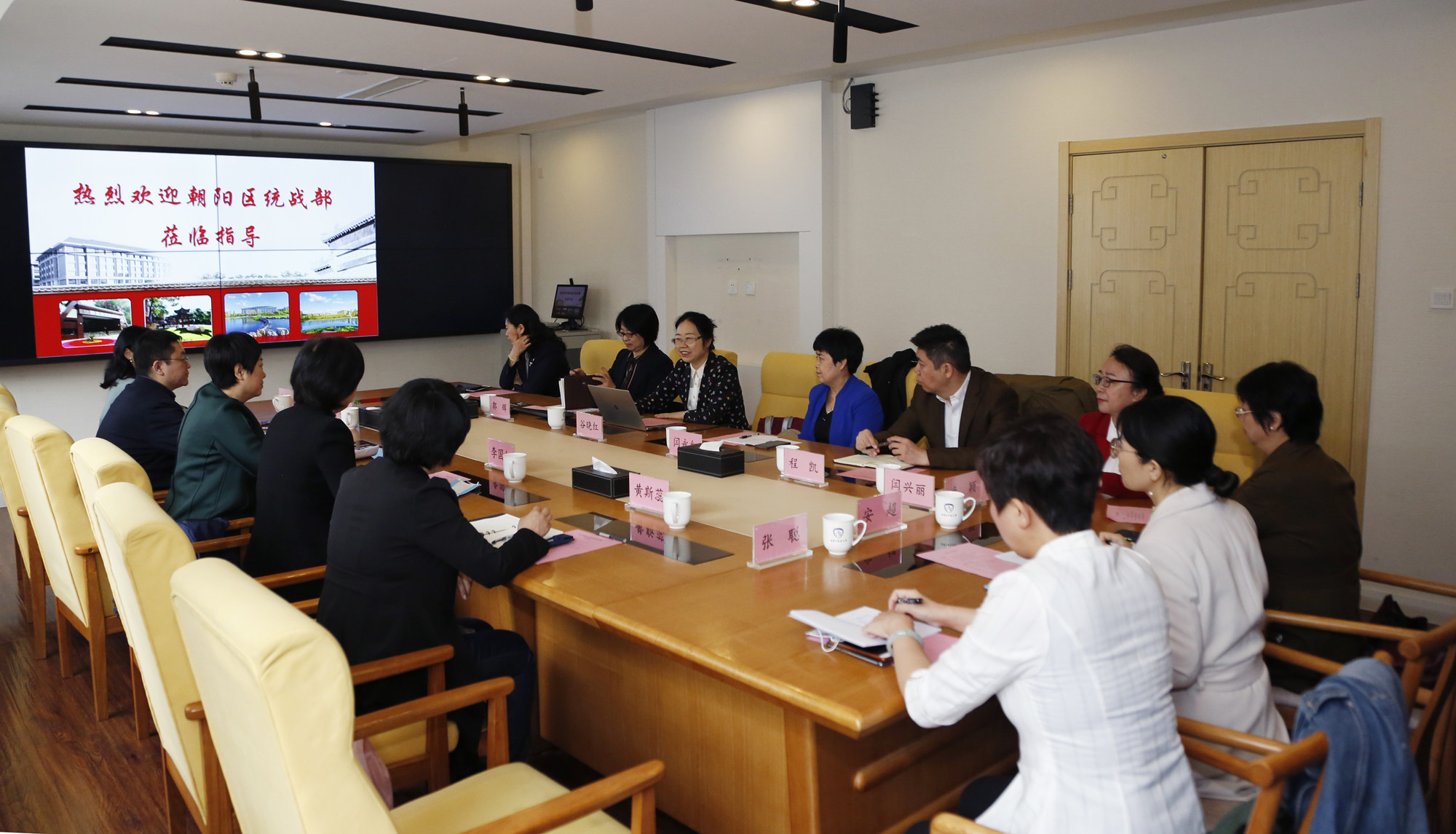 2021年4月12日上午,朝阳区委常委、统战部部长李国红一行五人来校调研并召开座谈会。