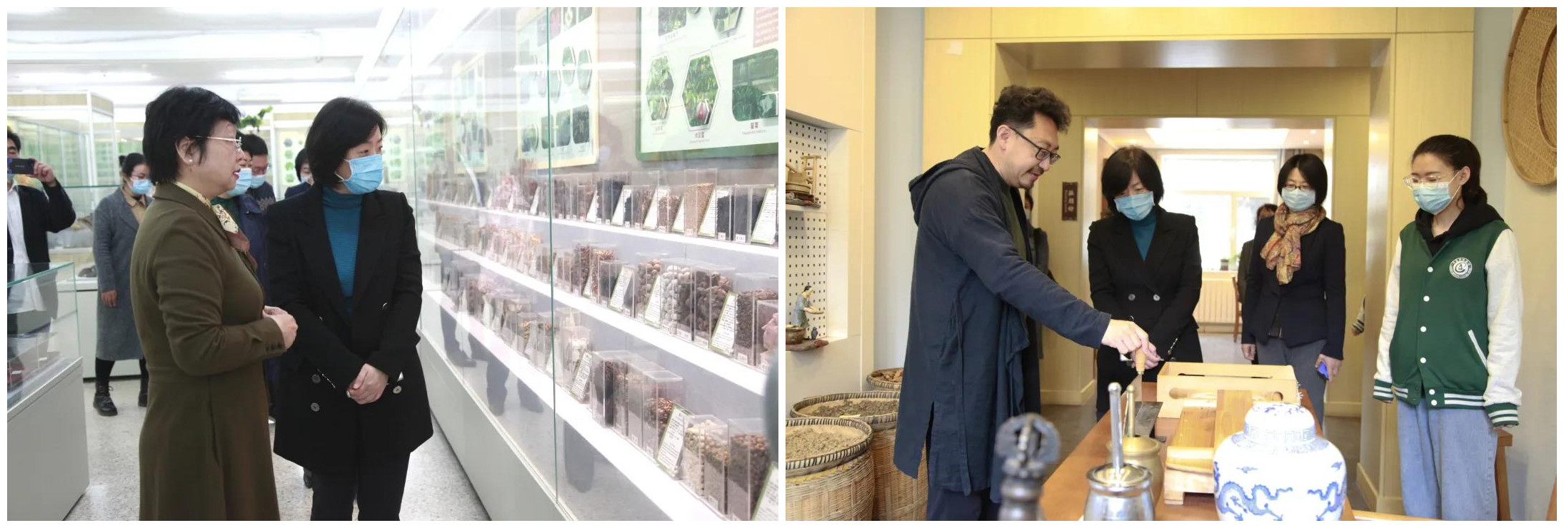 座谈会前,李国红部长一行参观了学校中医药博物馆和中医药体验馆。