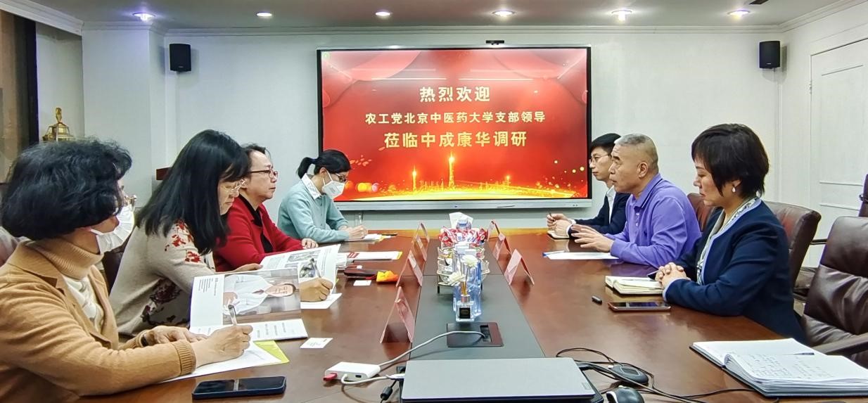 2022年3月7日下午,我校农工党支部主委闫兴丽、副主委张林、党员郭华、赵思佳一行4人前往北京中成康华科技发展股份有限公司参观调研。中成康华董事长侯浩、高管徐健、王滢等全程陪同参观座谈。