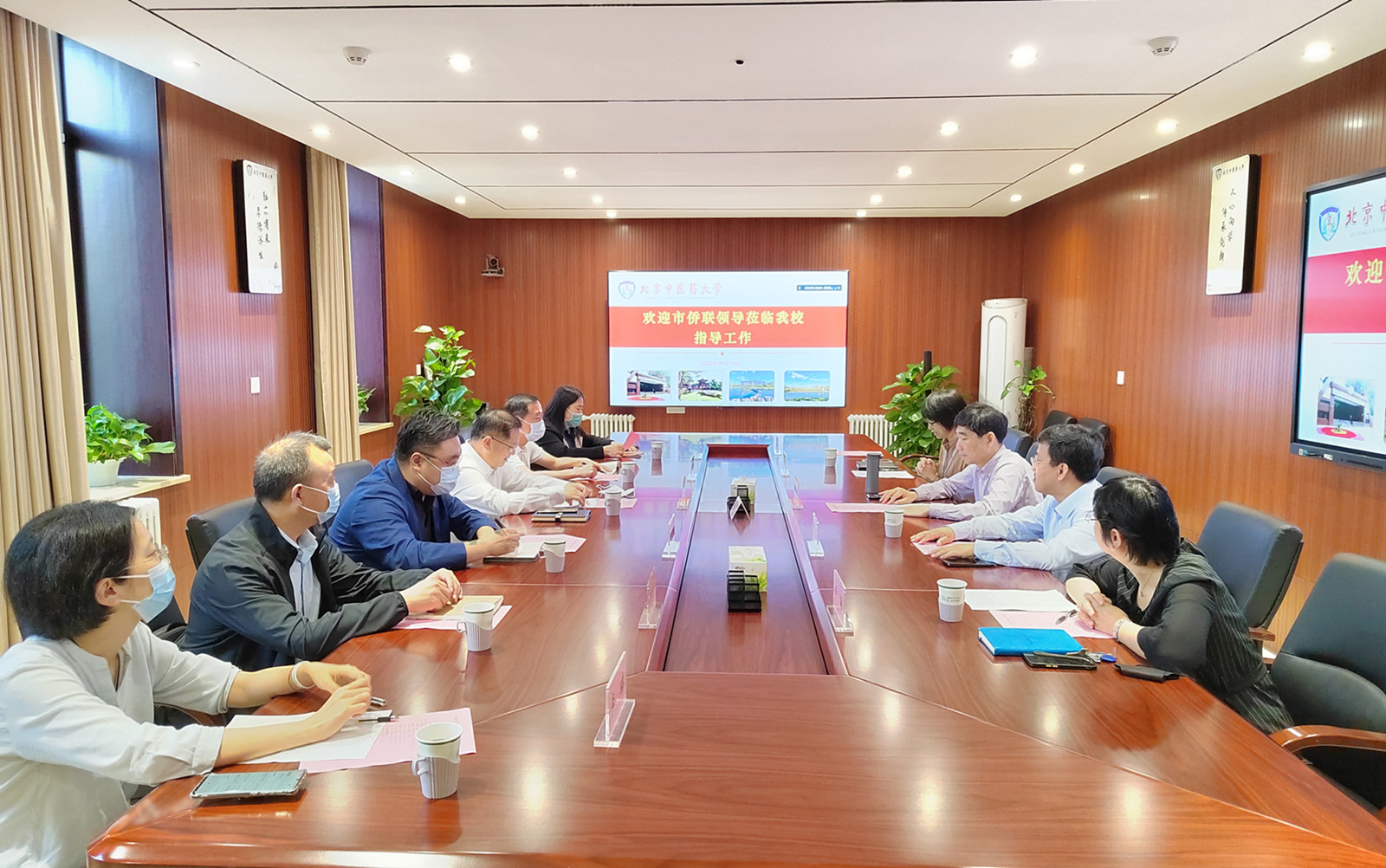 2022年9月29日上午,北京市侨联党组书记严卫群带队来我校调研并召开座谈会。学校党委副书记、校长徐安龙,党委副书记汪庆华,党委统战部常务副部长郭辉,校侨联主席卢颖,校友会、基金会秘书长闫兴丽,学校国家中医国际传播中心主任张丹英参加此次调研座谈会。会议由统战部常务副部长郭辉主持。