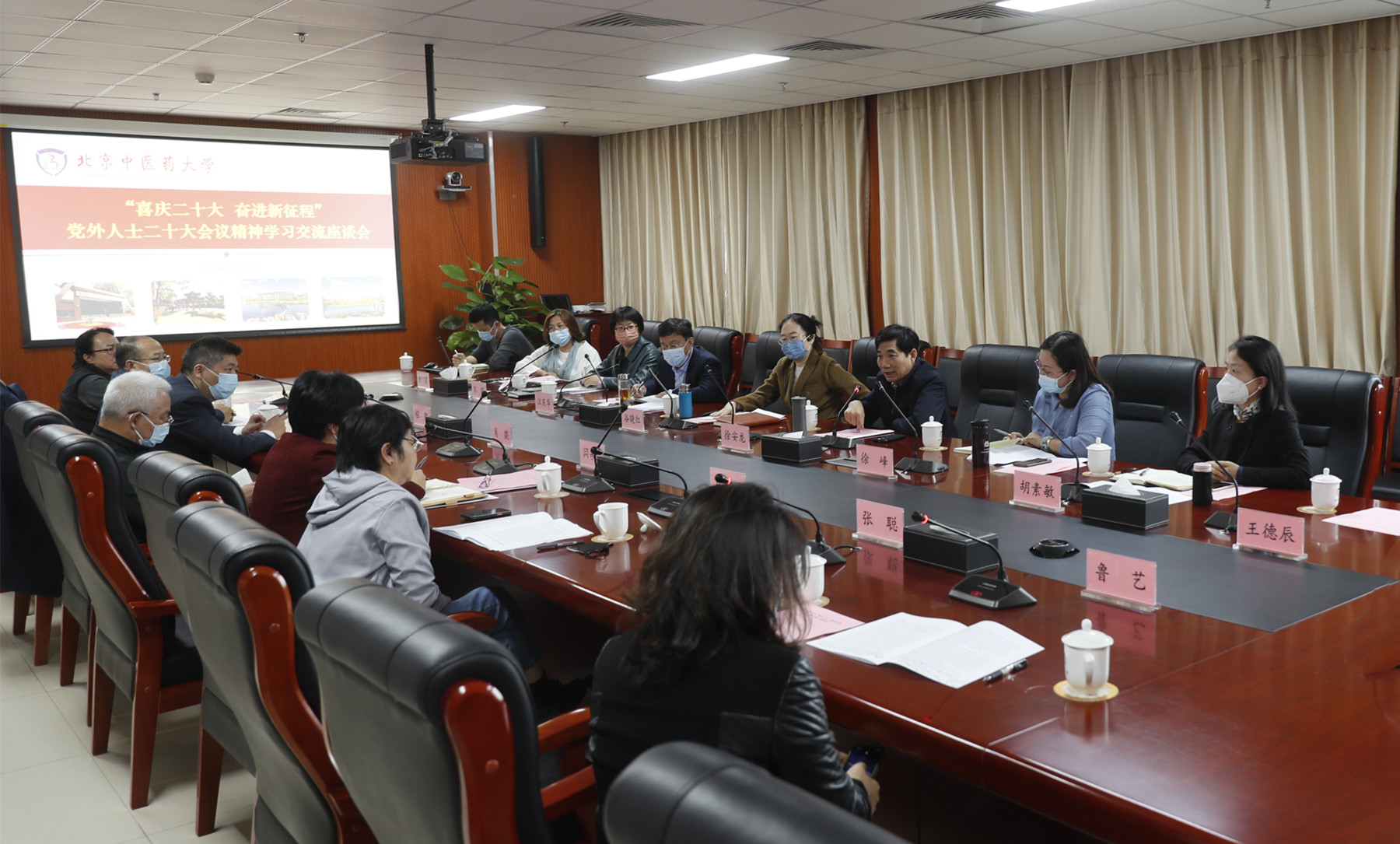 在座谈交流环节,徐安龙校长与参会党外人士充分沟通交流,对党外人士提出的相关问题及时给予了回应,并指出,广大党外人士要加强二十大会议精神学习,提高政治站位,提升自身能力,立足岗位为学校发展做贡献,把学习二十大精神的成果转化为“奋进新征程,建功新时代”建设中医药特色世界一流大学的行动。