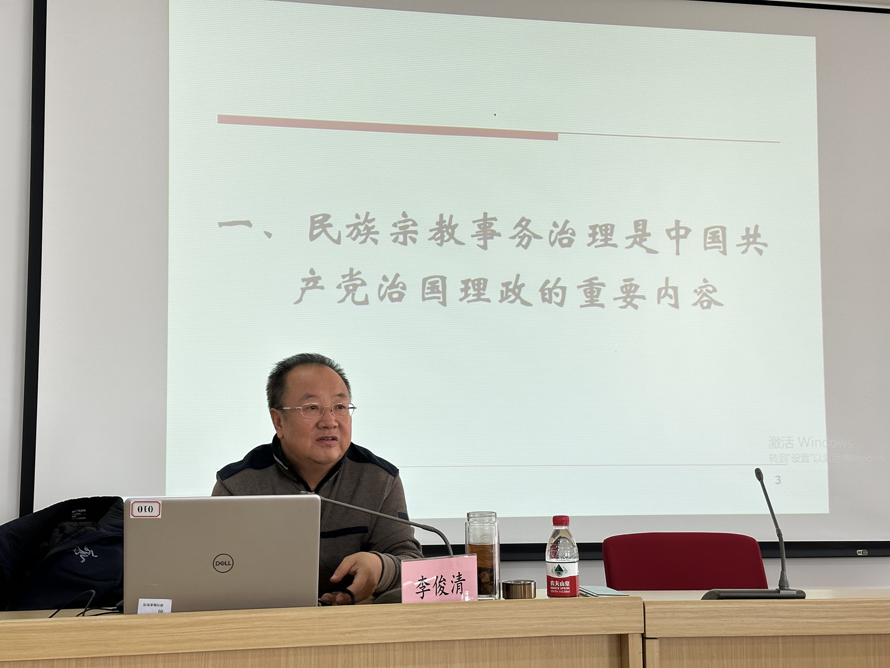 本次报告围绕主题,李俊清教授结合自己多年的工作经验和研究成果,运用大量数据和详实案例,从民族宗教事务治理是中国共产党治国理政的重要内容、中国共产党始终高度重视民族宗教事务治理、目前民族宗教事务治理面临的主要问题三个方面,全面细致地讲述了国家治理视域下的民族宗教事务现状。李俊清教授的报告内容丰富详实,语言幽默诙谐,既有理论高度,又有实际研究成果和工作案例,具有很强的现实针对性和指导性,为参会师生带来了一场精彩的报告。