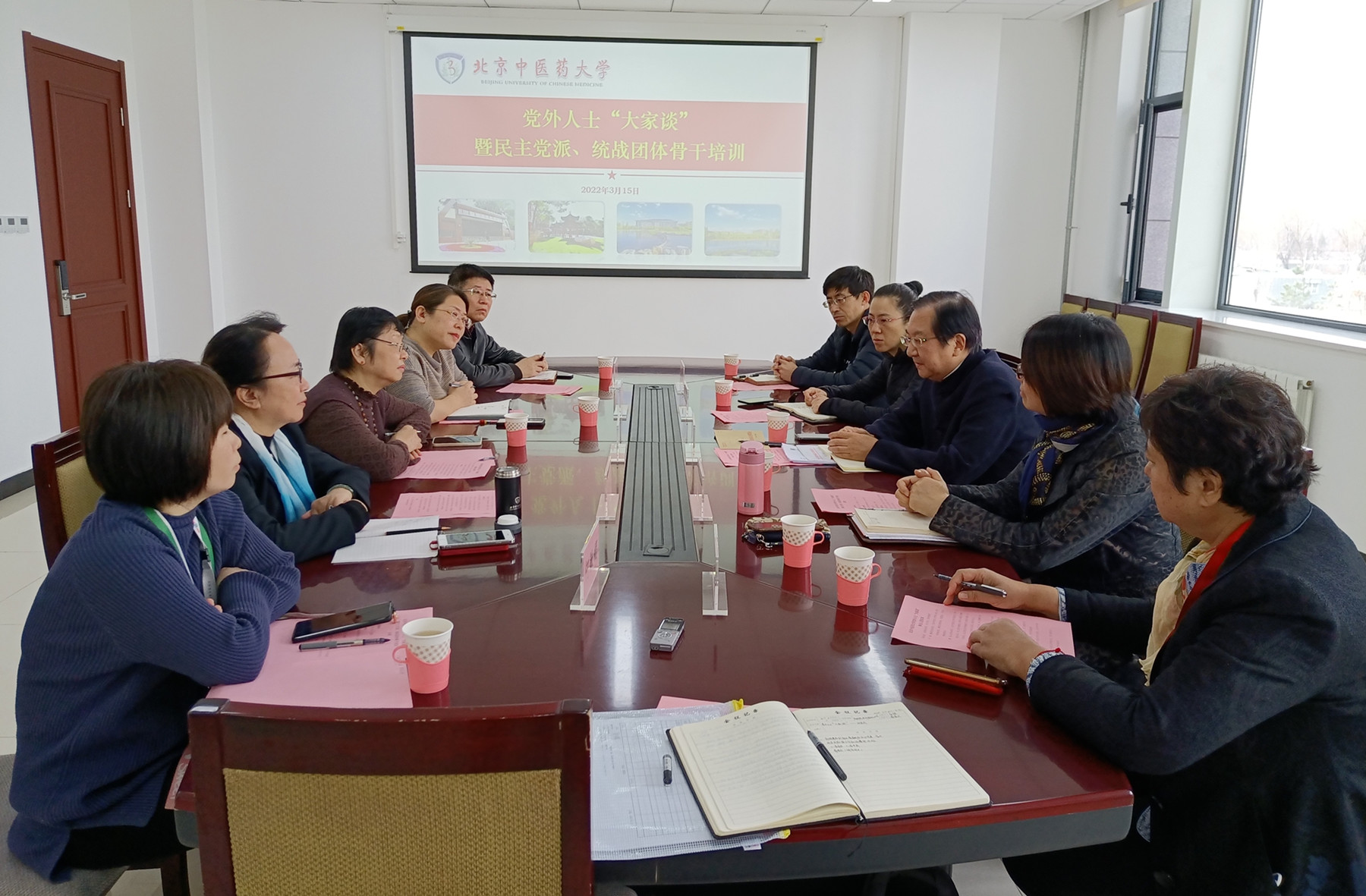 2022年3月15日,学校在良乡校区举办党外人士“大家谈”骨干交流培训活动。活动邀请全国政协委员、学校农工党支部原主委、国学院教授张其成作为主讲嘉宾,向党外人士传达全国两会精神,并就党外人士参政议政、履职建言等方面进行经验交流。参加活动的民主党派、统战团体骨干有朝阳区政协委员、北京市侨联委员、学校侨联主席卢颖,农工党朝阳区委委员、农工党永利yl23411支部主委闫兴丽,民盟永利yl23411委员会副主委张媛,民盟永利yl23411委员会第一支部主委何敏媚,民盟北京市委妇女委员会副主任李洪娟,农工党永利yl23411支部委员曲昌海,九三学社永利yl23411支社委员王如峰,学校侨联委员丁胜云。活动由学校党委统战部常务副部长郭辉主持。