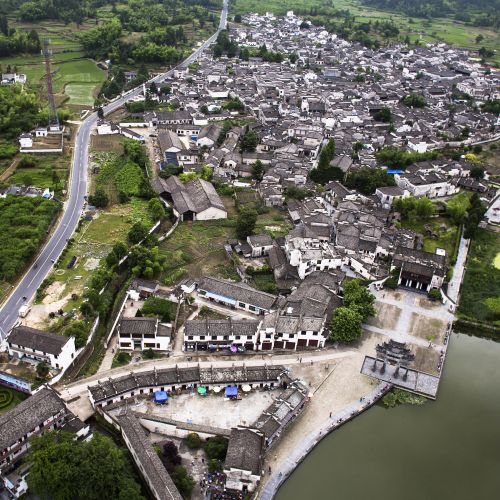 除了祠堂,牌坊也是儒教教化的另一体现。牌坊建筑属于纪念性建筑,也可作为标志性建筑出现。徽州首邑歙县唐宋以来曾建有400余座牌坊,至今仍保存完好的尚有100座左右。古徽州地区的牌坊多是表彰封建礼制的贞节牌坊和彰显功勋和政绩的功德牌坊。其中贞节牌坊、孝子牌坊为本家族中对封建正统礼教持虔诚态度的人而建。从建筑位置看,牌坊大多与祠堂相连建于村头,以其宏伟的规模和高耸的形象成为村落的标志,成为宗族的荣耀。空间影响区域十分巨大。它既是人们文化意识与道德观念的凝聚,也是某一家族地位的象征。(图20)