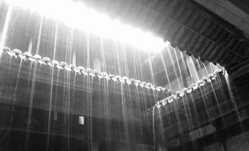 天井是古徽州建筑的一大特色,具有承接和排除屋面流水、采光、通风的作用。由于屋面檐口内朝天井,四周流水从檐口流入明坑,当地称之为“四水归堂”,由于水主财,当地徽商非常重视,要“聚财气”,“肥水不流外人田”,所以这种建筑设计正是该种想法在建筑上的外化。此外,天井长宽比一般为5:1,狭长形天井的采光多为二次折射光,相比较自然光更为柔和,使人感觉静谧舒适。由于天井狭小,风沙尘埃干扰亦小,厅堂与天井之间很少设门,两者通常融为一体,人们坐在厅堂内就能够晨沐朝阳,夜观星斗。高大封闭的外墙隔离了自然,但天井又将自然引入,这正是古徽州的建筑风格的具体体现。(图8、图9)